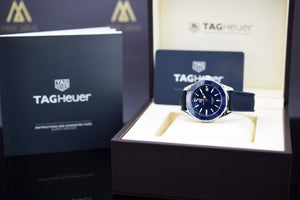 Die Tag Heuer Box, die Tag Heuer Bedienungsanleitung und die Tag Heuer Karte werden mitgeliefert.